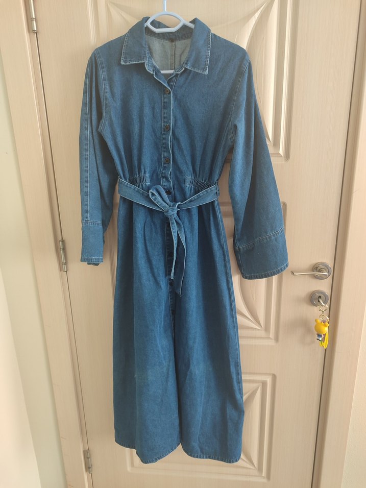 Bu kot kumaştan yapılmış, bol kesim hamile tulumu uzun kollu ve yakalıdır. Kemer detaylı bel kısmı şekil verir. Günlük kullanıma uygun rahat bir modeldir.