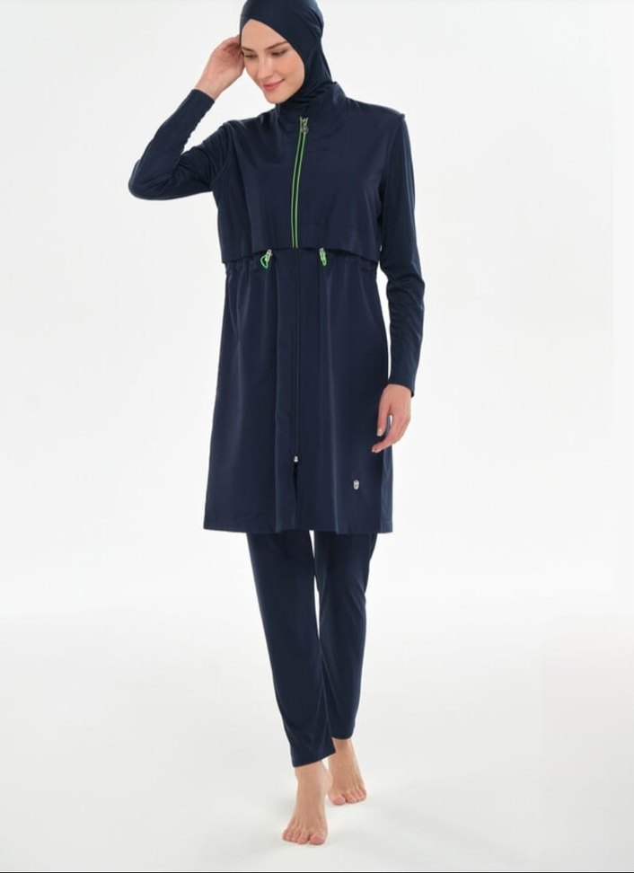 Uzun Kollu Kemerli Lacivert Tesettür Mayo Modanisa