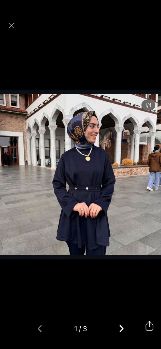 Siyah renkli, sentetik kumaştan yapılmış uzun kollu ve kemerli tesettür takımdır. Yüksek yakalı, etnik desenli ve günlük kullanım için uygundur.