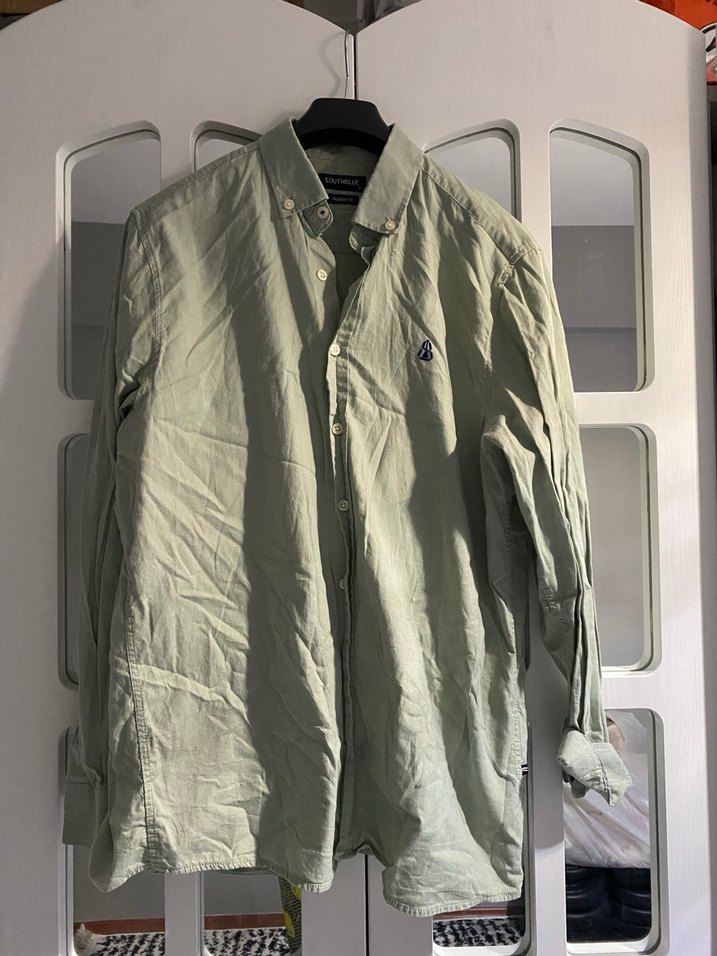 Nefes alabilen keten kumaştan, uzun kollu, bol kesim khaki gömlek. Yaka ve düğmeli ön detaylarıyla günlük rahat stil için uygun.
