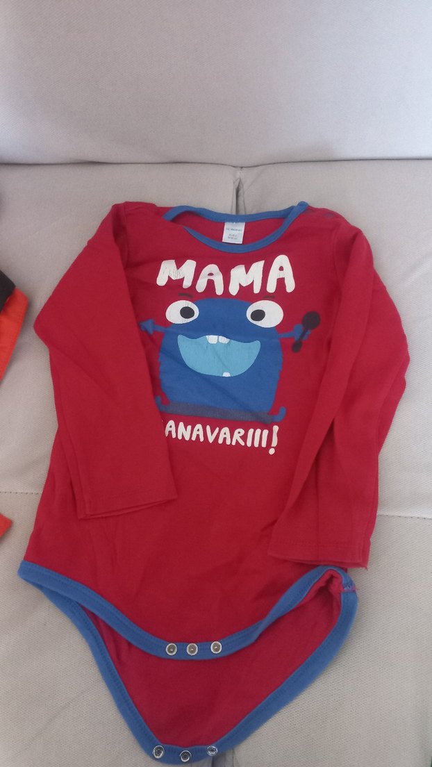 Renkli, uzun kollu bebek body, yuvarlak yaka ve düğmeli kapanışa sahiptir. Yumuşak ve sıcak kumaştan, "MAMA ANAVARIII!" baskılı eğlenceli pop kültür tarzında