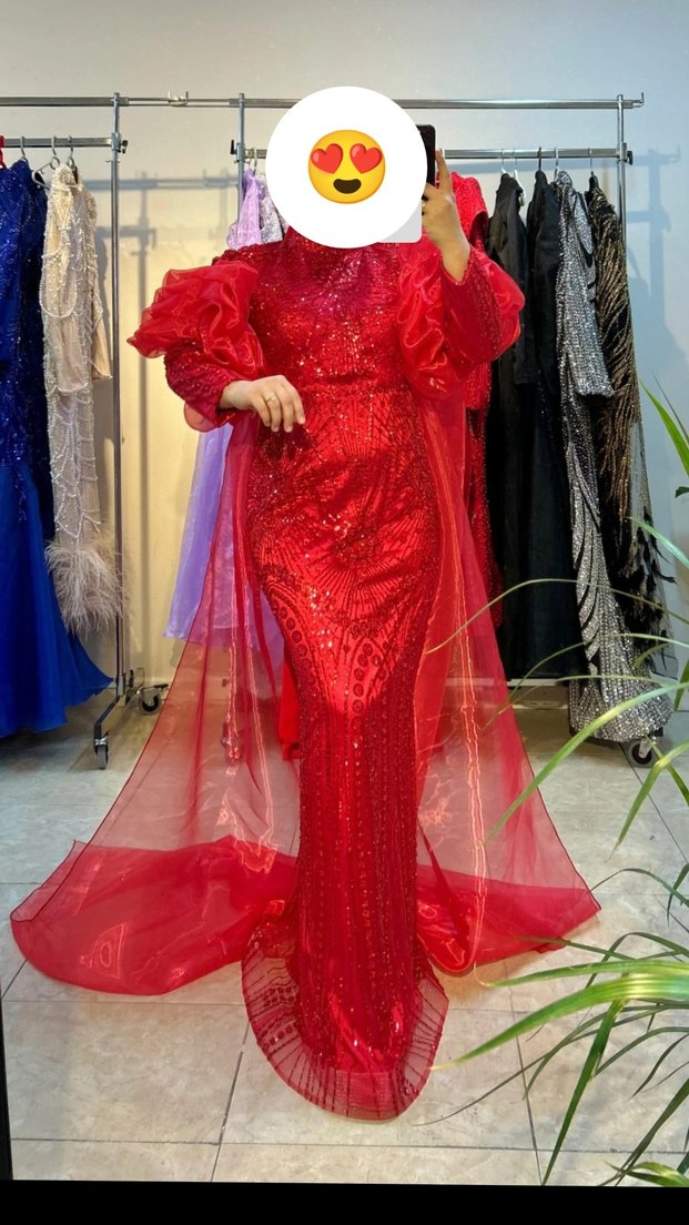 Uzun kollu, yüksek yakalı ve renkli desenli, drapeli, vücuda oturan uzun abiye elbise. Düğün gibi gösterişli etkinlikler için uygundur. 38.40.42 şal dahil tarih sorun