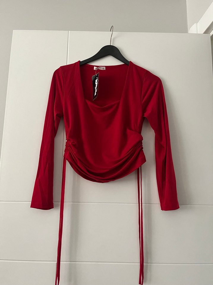 Uzun kollu, drapeli detaylı, satenimsi kumaştan yapılmış, ince kesim kırmızı bluz. Romantik akşamlar için uygundur. ❤️