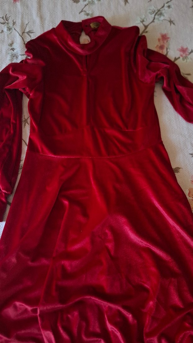 Drapeli tasarımı, V yakası ve uzun kollu kırmızı, parlak kumaştan diz üstü abiye elbise. Özel günler için uygun. Bir kez Kınada giydim , yumuşak ve sapasağlam