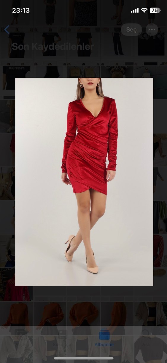 Uzun Kollu Kırmızı Elbise s-m beden etiketli