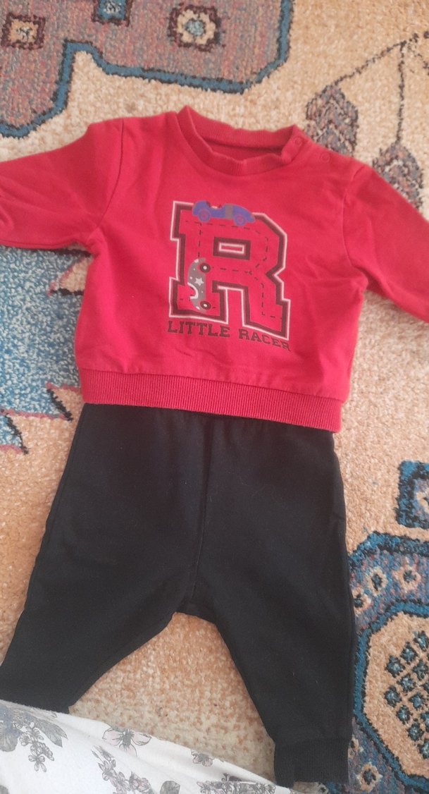 Bu erkek bebek takımında renkli kırmızı uzun kollu üst, üzerinde baskılı 'R' ve 'Little Racer' yazısı bulunur. Siyah pantolon ile kombinlenmiş, yuvarlak yaka ve cırt cırtlı kapanışa sahiptir. Yumuşak ve sıcak kumaş rahatlık sağlar.