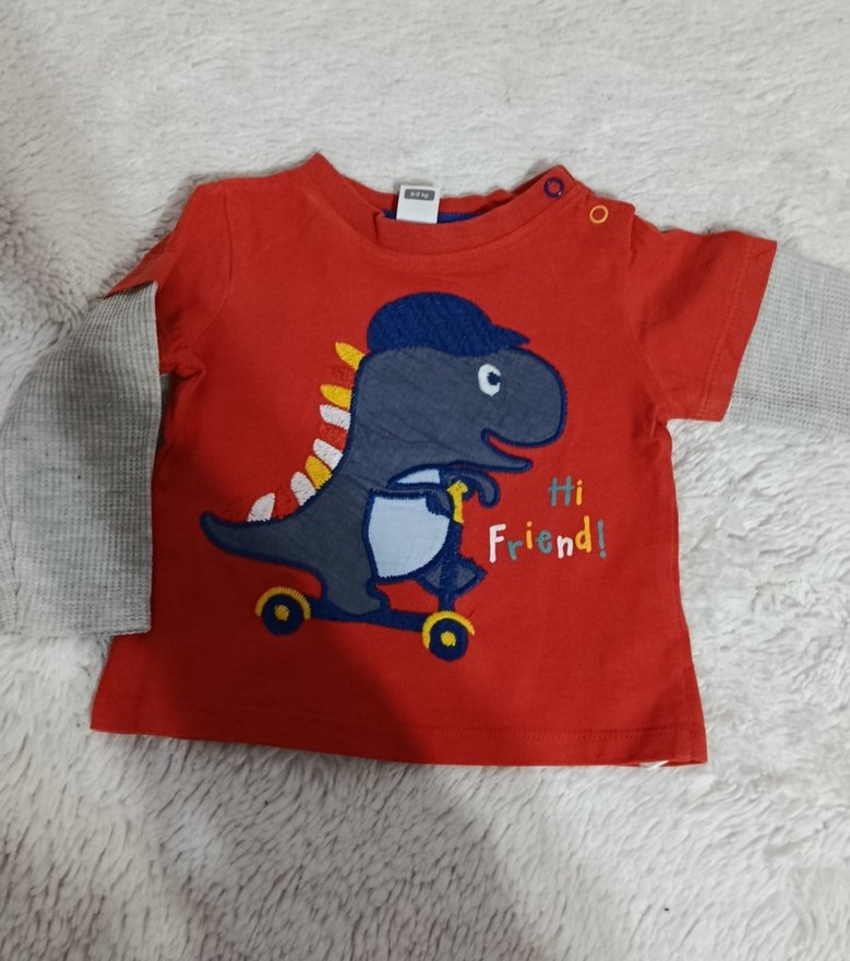 Renkli baskılı, uzun kollu kırmızı erkek çocuk tişörtü. Rahat kesim, yuvarlak yaka ve örme yumuşak kumaştan üretilmiştir.