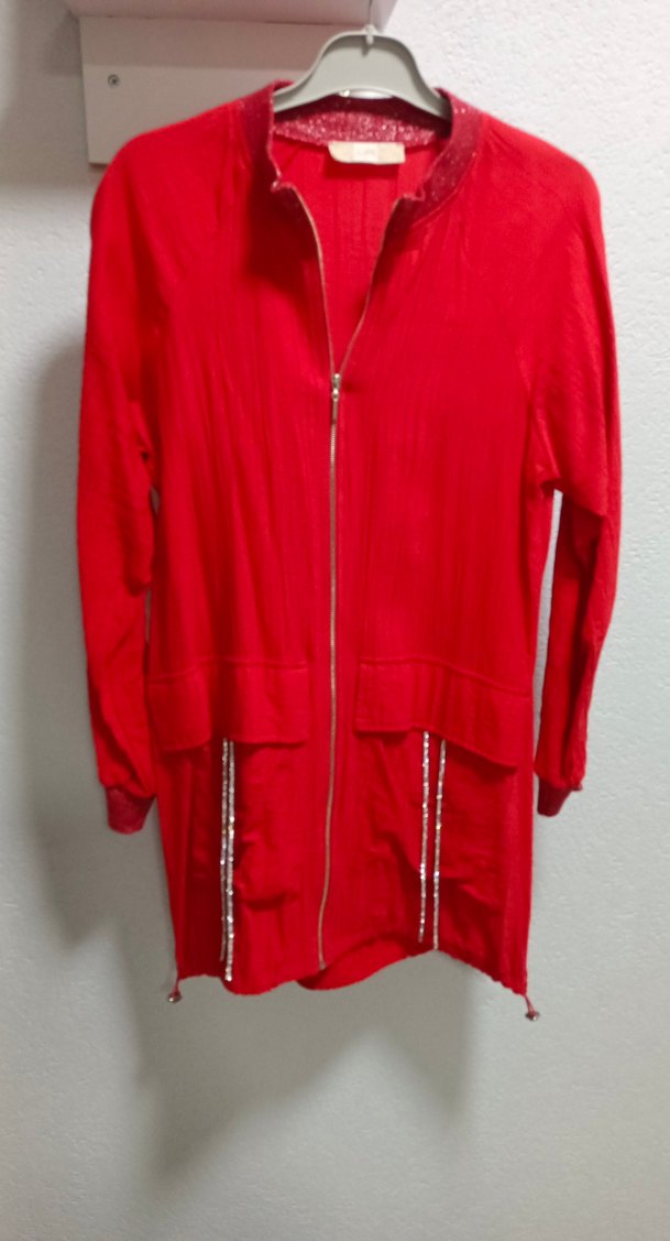 Uzun Kollu Kırmızı Fermuarlı Kadın Ceket
