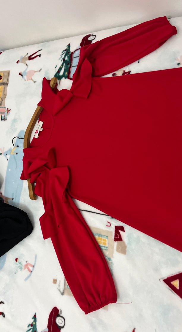 Uzun Kollu Kırmızı Fırfırlı Kadın elbise