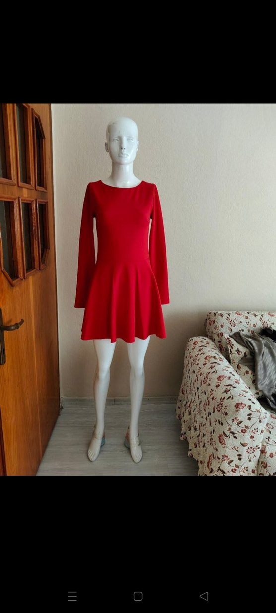 Uzun Kollu Kırmızı Mini Elbise