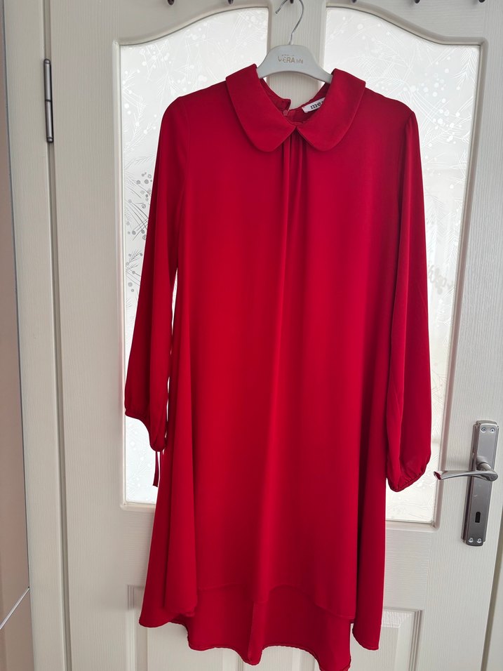 Uzun Kollu Kırmızı Saten Tunik