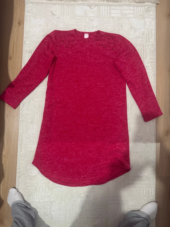 uzun kollu, bisiklet yaka, yumuşak ve sıcak kumaştan, rahat kesim kırmızı triko kazak. Düz ve örme yapıda. ❄️
