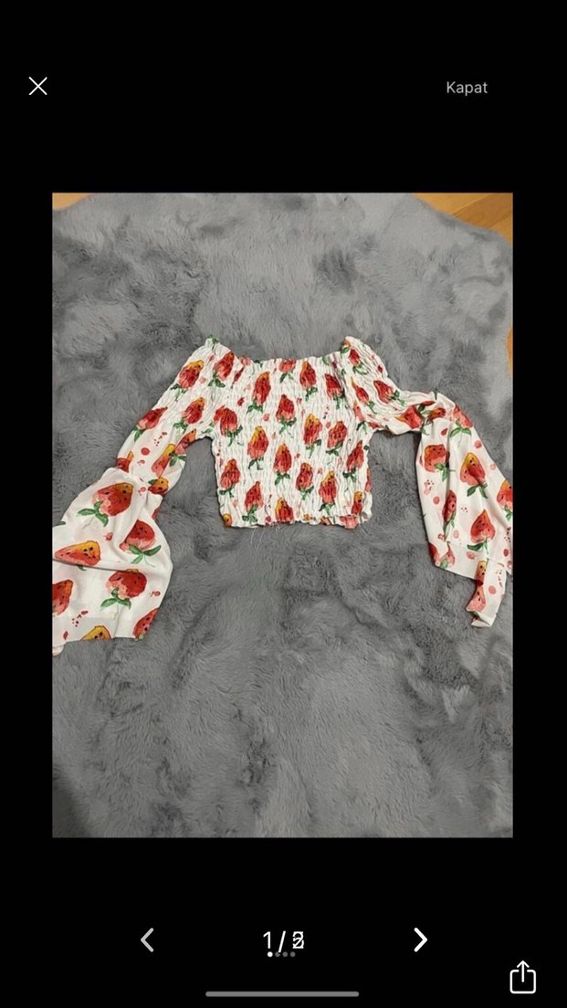 Bu kısa ve oturan bluz, uzun kollarda volan detayları ve kayık yaka ile tasarlandı. Bağcıklı deseni ve sentetik kumaşıyla bohem ve rahat bir tarz sunar.