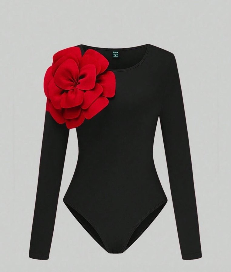 Uzun kollu, fitted kesim bluz, yuvarlak yakalı ve büyük koyu kırmızı çiçek detaylı. Sentetik kumaştan, düğmeli ve ofis kullanımı için uygun. Yurtdışından alındı