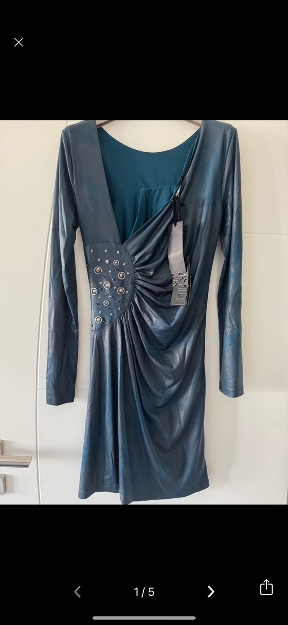 Bu dar kesim gece elbisesi uzun kollu, V yakalı ve drapeli tasarıma sahip, gotik ve avant-garde tarzda romantik geceler için ideal.