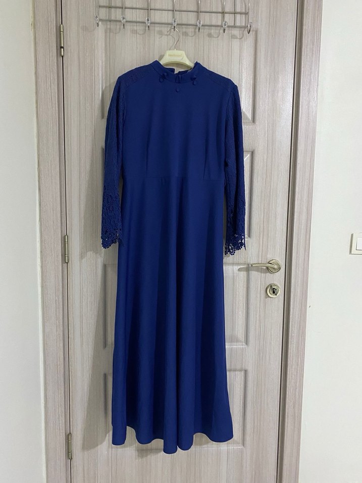 Uzun Kollu Koyu Mavi Kadın Elbise