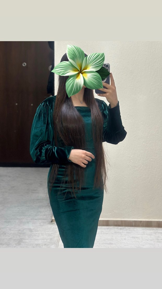 Uzun Kollu Koyu Yeşil kadife Kadın Elbise