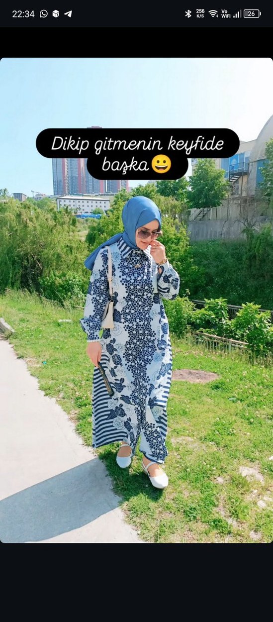 Lacivert uzun elbise, bol kesim, drapeli ve batik desenli. Pamuk kumaştan, uzun kollu ve boğazlı yakalı, dış mekan için uygun. özel dikimdir