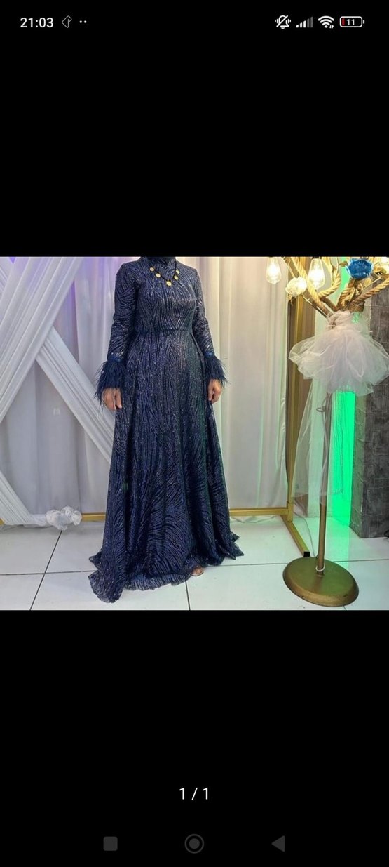 Uzun kollu, V yakalı ve boncuk işlemeli lacivert abiye elbise. Bohem tarzda, düğünler için uygun, rahat kesim. Ürün birkaç kere temiz kullanıldı .
