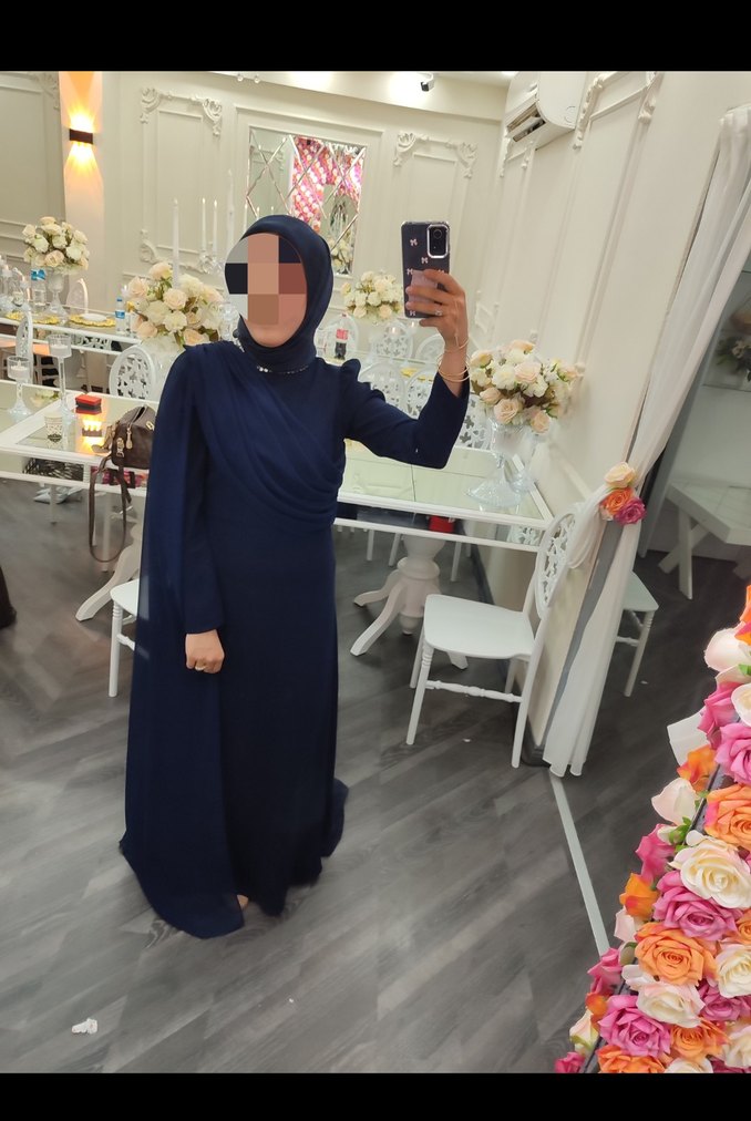 Uzun Kollu Lacivert Drapeli Abiye Elbise 1kez gıyıldı