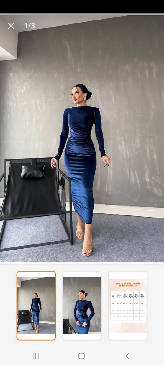 Lacivert, uzun kollu, drapeli ve tek renk bu uzun elbise, satenimsi kumaşı ve tekne yaka detayıyla ofis için modern ve iddialı bir tarz sunar. ✨