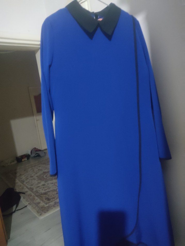 Uzun kollu, lacivert kadın tunik düz renk ve siyah yakalıdır. İş stiline uygun, rahat kesim ve uzun boydadır.