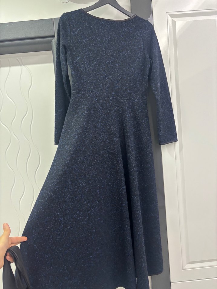 Lacivert, uzun kollu, kışlık kumaştan, yandan fermuarlı ve drapeli uzun elbise. Belden seyyar kuşağı var ister kuşaklı ister kuşaksız kullanılabilir. Oldukça rahat ve şık bir elbise. 38-40 beden giyenler tercih edebilir