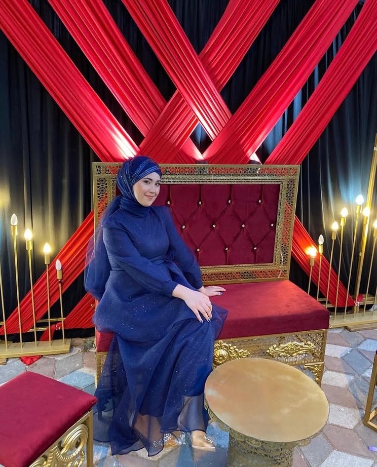 Uzun kollu, yüksek yakalı ve etnik desenli, lacivert renkli, drapeli ve vücuda oturan bu tesettür abiye elbise düğünler için uygundur. Kuru temizleme yapıldı 40 beden için uygundur . Simli ve kemer detayı bulunuyor .