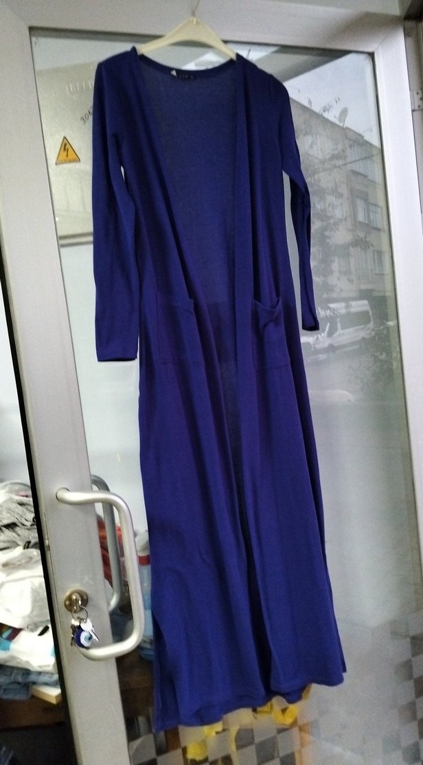 Uzun ve bol kesim lacivert hırka uzun kollu ve desensiz sade tasarıma sahiptir. Günlük kullanım için rahat ve minimalist bir modeldir. iki koltuk arası 46 47