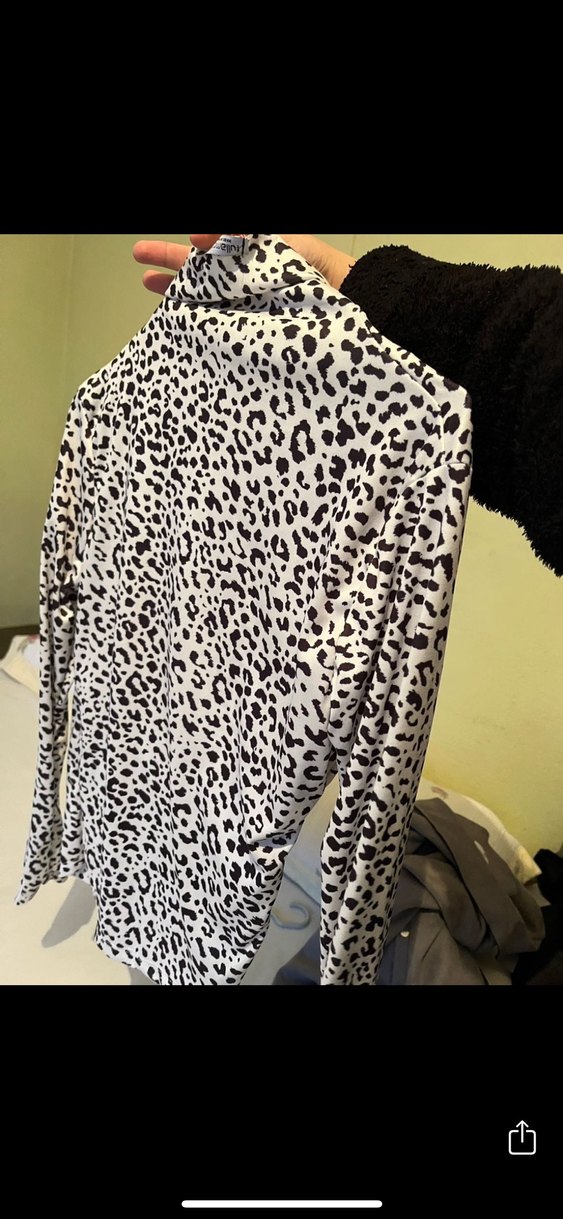 Uzun Kollu Leopar Desenli Boğazlı Bluz