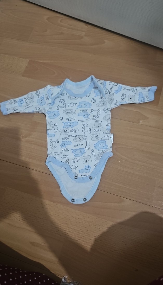 Uzun Kollu Mavi Baskılı Bebek Çıtçıtlı Body