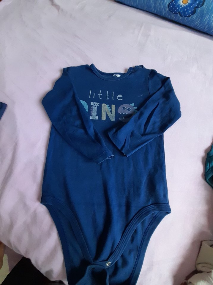Koyu mavi uzun kollu bebek body, yuvarlak yaka ve yumuşak, sıcak kumaş ile. Önünde "little IN" yazısı bulunan sade tasarım, sokak stili için uygun. 3 4 yaş
