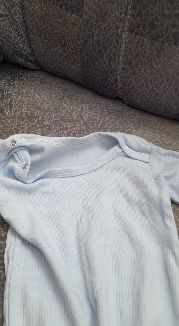 Uzun kollu, bisiklet yaka ve düğmeli mavi bebek body. Yumuşak ve sıcak kumaştan üretilmiştir, rahat kullanım sunar.