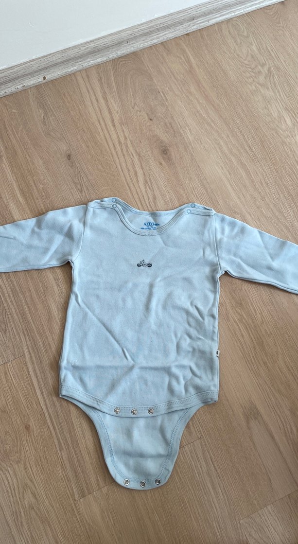 Pastel mavi, uzun kollu, yuvarlak yakalı, çıtçıtlı bebek body. Yumuşak ve rahat kumaştan üretilmiştir.