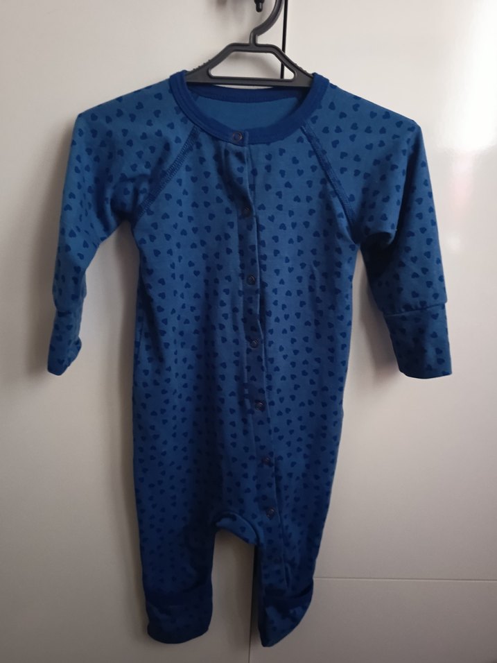 Yumuşak ve sıcak fleece kumaştan, düğmeli kapamalı, uzun kollu koyu mavi bebek tulumu. Yuvarlak yakalı ve sade normcore tarzda.
