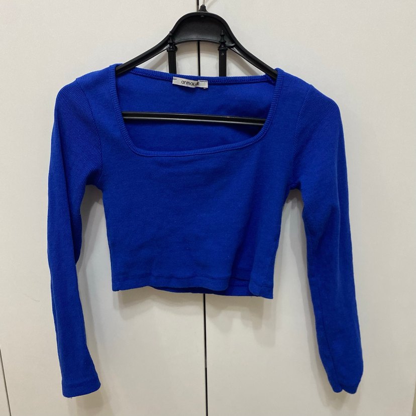 Uzun Kollu Mavi Crop Top
