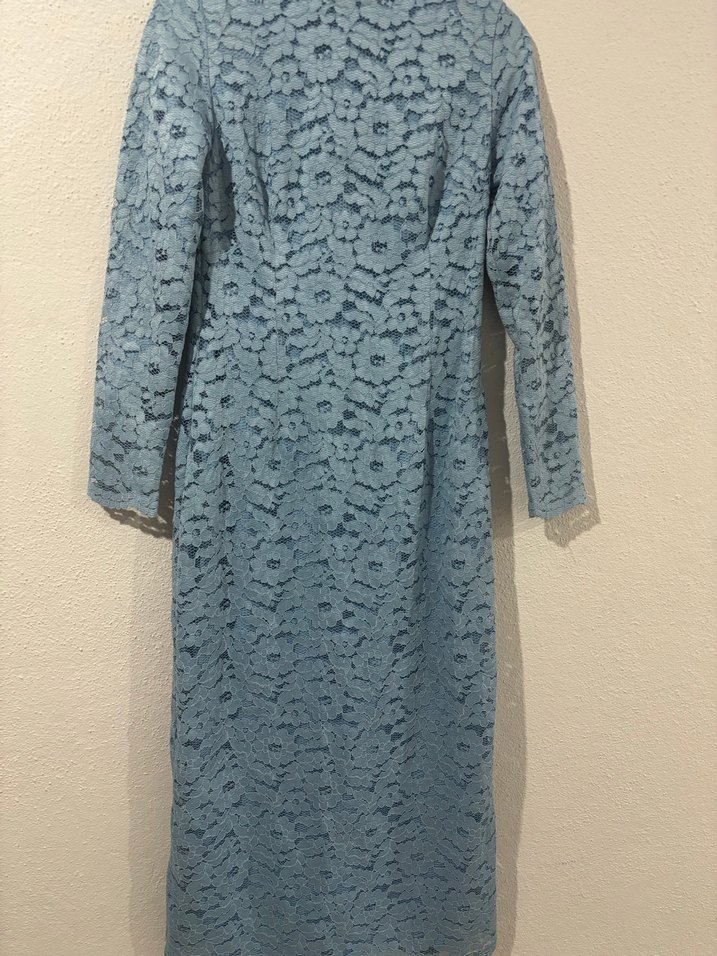 Uzun Kollu Mavi Dantel Elbise