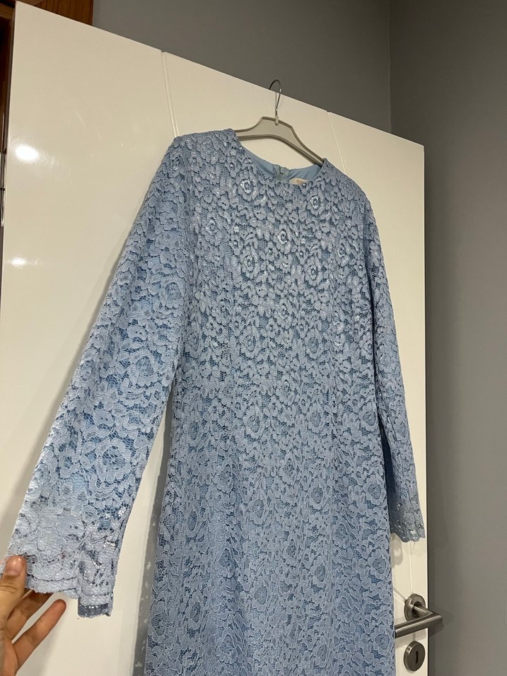 Uzun Kollu Mavi Dantel Kadın Elbise