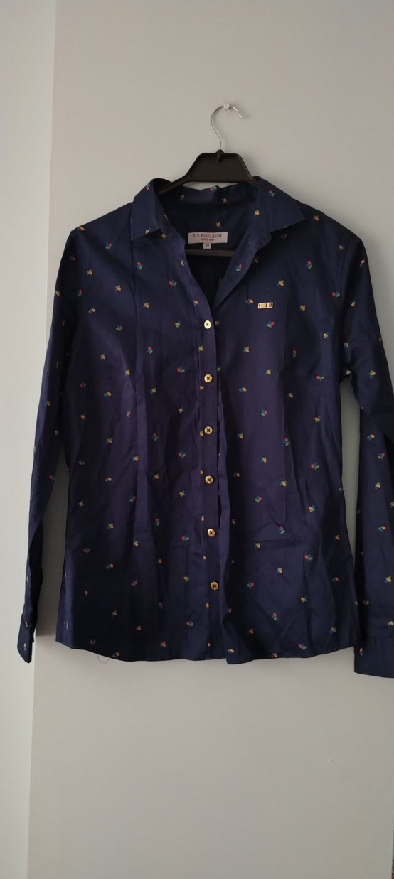 Uzun kollu, mavi renkli ve desenli bu kadın gömlek, ön kapama ve notlu yakaya sahiptir. Regular kesim ve midi uzunlukta, sentetik kumaştan üretilmiştir. Original polo