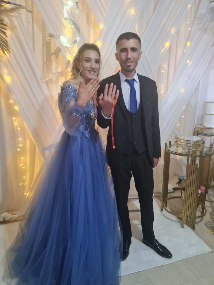 Uzun kollu, işlemeli mavi nişan elbisesi, kesik yakalı ve düzenli kesime sahiptir. Parlak batik deseniyle klasik ve modern şıklığı bir araya getirir. Sadece 1 kere evde sözde giyildi tertemiz isteyene video atılır