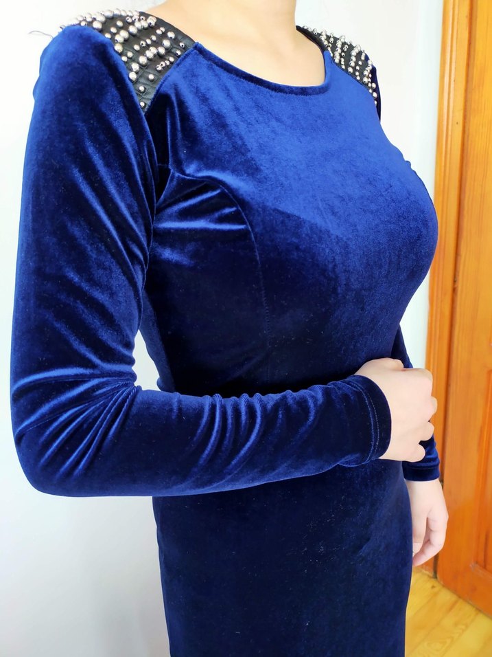 Uzun kollu mavi parlak kadife kumaş Bir kez giyildi 36 beden için uyumlu