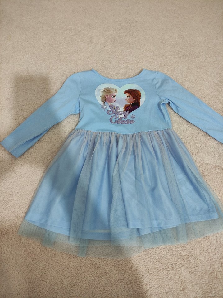 Uzun kollu, bisiklet yaka, pastel mavi renkte kız çocuk elbisesi. Yumuşak ve sıcak kumaş, baskılı desen ve etek kısmında fırfır detayları bulunur. ❄️sadece iki kere kullanıldı tertemiz