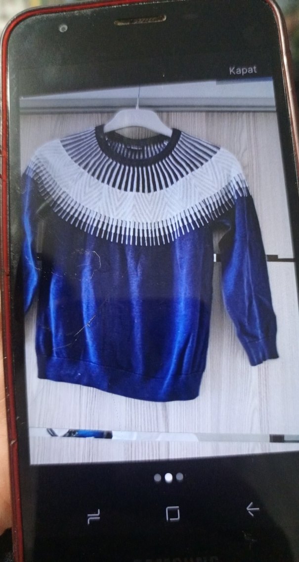Uzun Kollu Mavi Örgü Kazak