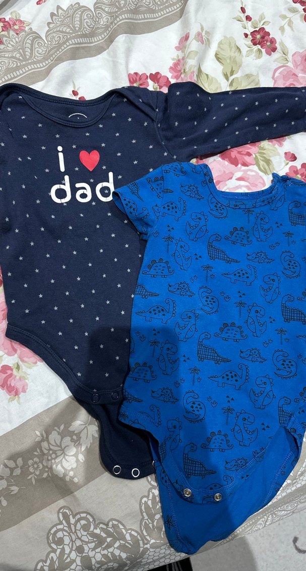 Uzun kollu, yuvarlak yakalı, pamuklu ve örme kumaştan mavi erkek bebek body. Üzerinde renkli baskılar ve "I ❤️ dad" yazısı var. İkisinin fiyatıdır sadece birisi Ic waikiki dir