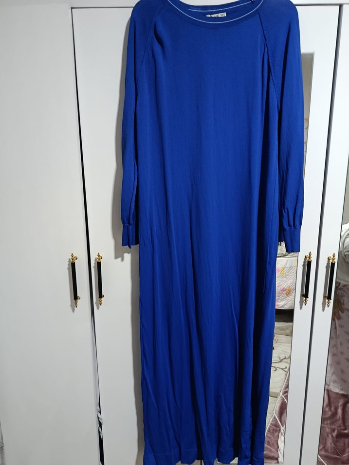 Uzun Kollu Mavi Salaş Elbise triko