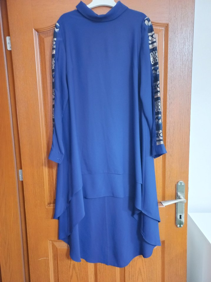 Uzun Kollu Mavi Salaş Tunik