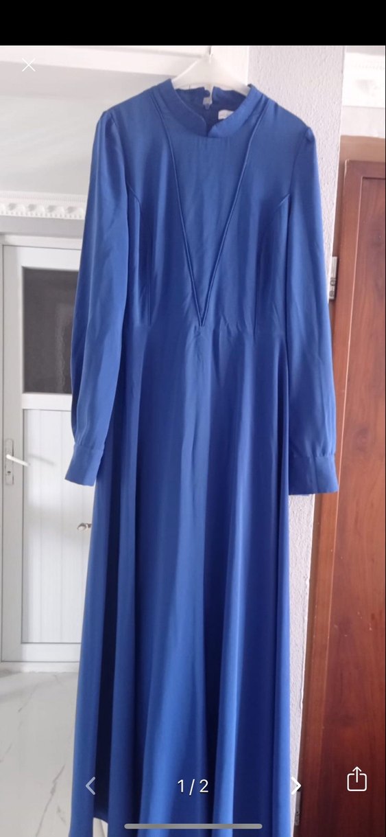 Uzun Kollu Mavi V Yaka Salaş Elbise