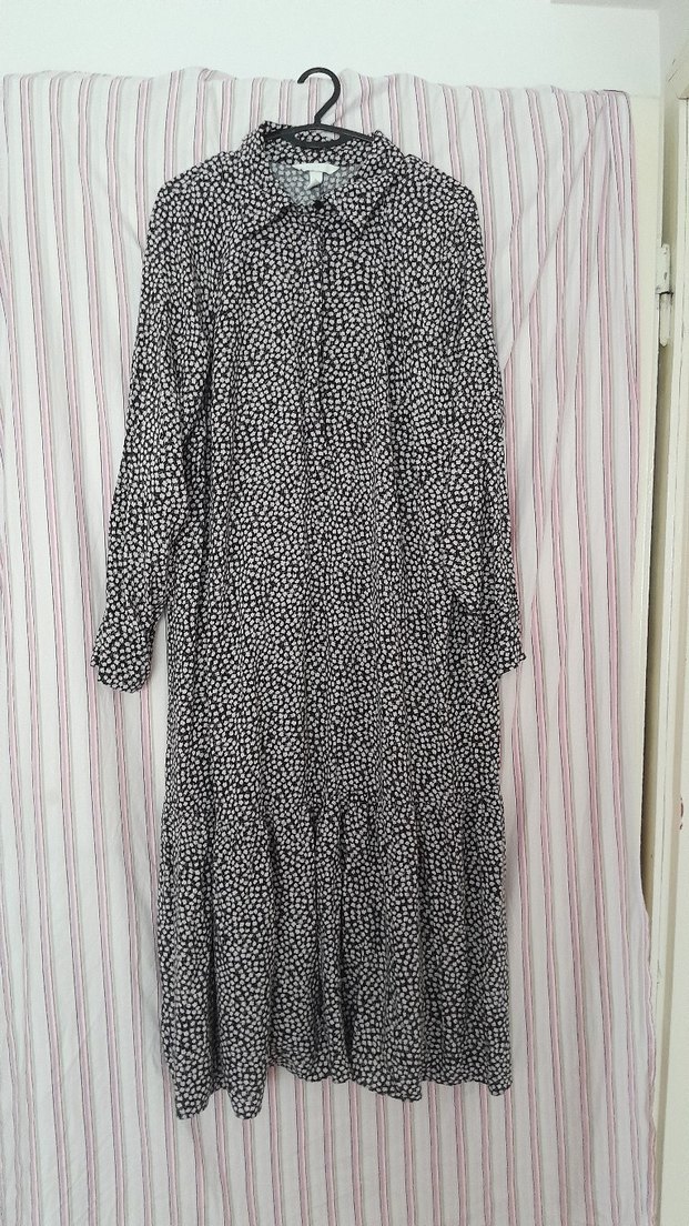 desenli. h&m markaya ait. yakada kücük bi sökük mevcut. 1.55 cm boy üstü icin midi elbisedir.