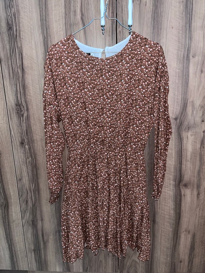 Uzun kollu midi elbise. Belden lastikli. Duruşu çok hoş. Yıpranma veya yırtılması yok.