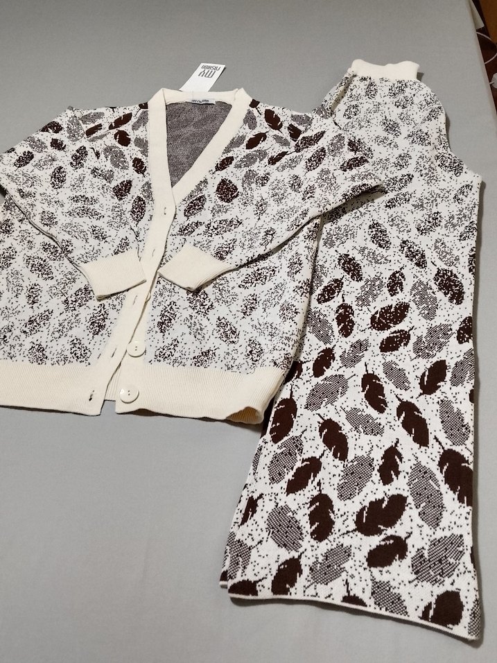 Uzun kollu, mini boy ve yakalı desenli lohusa pijama takımı. Rahat kesimi ve kahverengi-gri yaprak desenleriyle konfor sağlar.